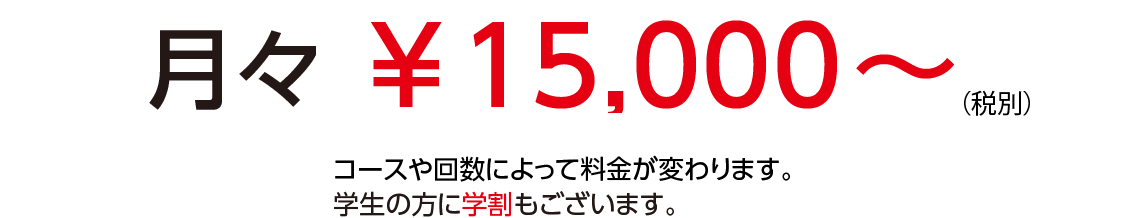 A.コースや回数によって月々の料金が変わります。学生の方には学割もご用意しております。