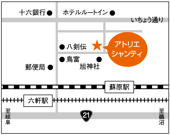 アトリエシャンティは岐阜、名古屋をはじめ三重、福井、金沢、富山、長野、東京、静岡、滋賀、京都、大阪、神戸、福岡など全国の参加者の方々にも好評いただいております。スクールとサロンから徒歩1分の場所に「ホテルルートイン各務原」がございますので、宿泊型の参加者の方々にも快適にレッスンやセミナーにご参加いただけます。話し方の授業などで宿泊される方も安心。岐阜、名古屋、一宮の方に好評いただいてます。